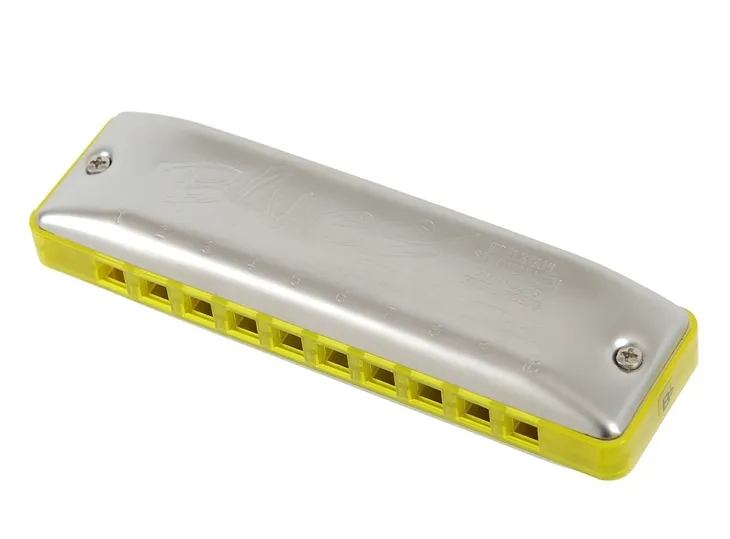 Bezblokowa harmonijka bluesowa ze stroikami ze stali nierdzewnej, matowe, ergonomiczne osłony dźwięków i miedziany korpus z tworzywa sztucznego.