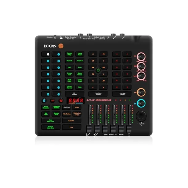 iCON Live Console to innowacyjny interfejs audio USB zaprojektowany dla profesjonalnych transmisji na żywo, kompatybilny z PC, Mac oraz urządzeniami mobilnymi. Wyposażony w wbudowane efekty DSP oraz sloty na próbki dźwiękowe, ten interfejs jest idealnym narzędziem dla każdego streamera, muzyka czy podcastera.