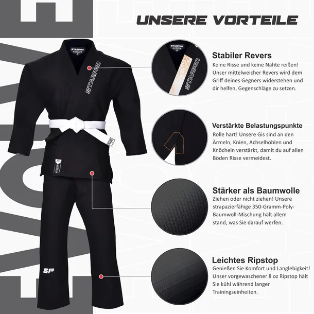 Kimono jest starannie szyte z wysokogatunkowych materiałów, co gwarantuje jego wytrzymałość i odporność na rozdarcia. Oddychająca tkanina zapewnia komfort termiczny, nie przegrzewa ciała i pozwala na pełną swobodę ruchów. Dzięki rygorystycznej kontroli jakości Starpro, każdy egzemplarz spełnia najwyższe standardy, a jego cena pozostaje przystępna — bez kompromisów w kwestii jakości.