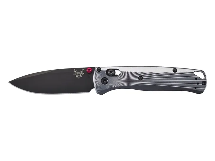 Benchmade 535BK-4 Bugout ma okładziny z lekkiego i wytrzymałego aluminium lotniczego, które poza efektownym wyglądem, zapewnia minimalny ciężar noża — zaledwie 71 g. Okładziny mają promieniste frezy, które zapewniają pewny i wygodny chwyt noża. Kompaktowy klips z opcją przełożenia (lewa/prawa), umożliwia przenoszenie noża w kieszeni w bardzo dyskretny, nie rzucając się w oczy sposób. W rękojeści znajduje się również otwór umożliwiający mocowanie linki lub oplotu z paracordu.