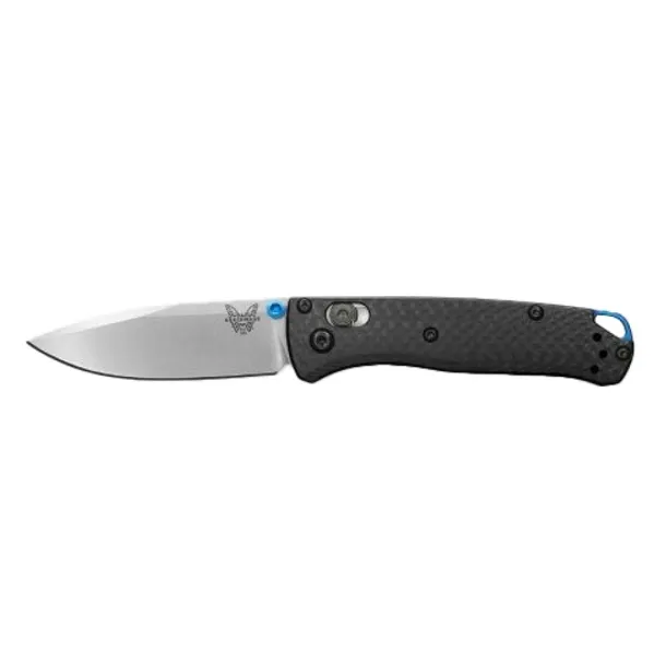 Benchmade 533-3 Mini Bugout to model w wersji premium, wyposażony w głownię z super stali CPM-S90V, okładziny z frezowanego włókna węglowego oraz adnotowane na niebiesko dodatki.