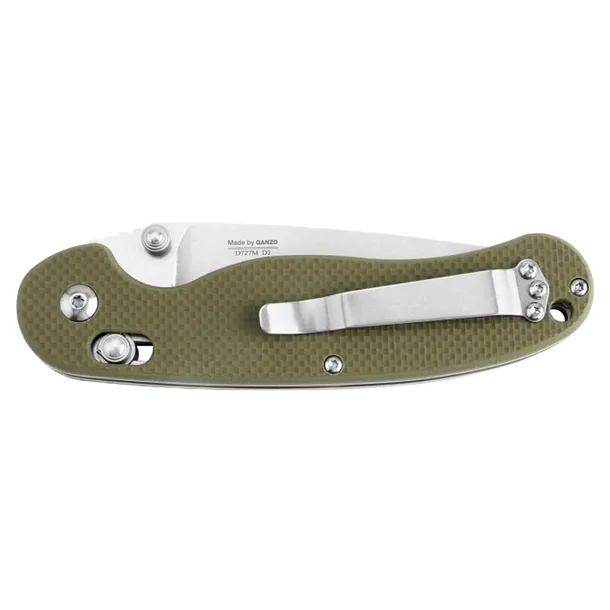 Ganzo D727M-GRto wszechstronny nóż edc, wyposażony w głownię ze stali narzędziowej D2, wygodną blokadę g-lock, teksturowane okładziny G10 oraz obustronny kołek umożliwiający błyskawiczne rozłożenie ostrza jedną ręką