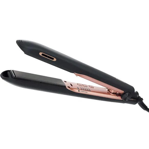Rozpylone cząsteczki wody nanoe zawierają około 1000 raz więcej wody niż normalne jony i są generowane przez boczne otwory wentylacyjne płytek. Nawet przy użyciu wysokiej temperatury technologia nanoe zapobiega utracie wilgoci i uszkodzeniom cieplnym, dzięki czemu naskórek jest bardziej spójny i nawilża włosy, zapewniając lśniący, gładki i lśniący wygląd.