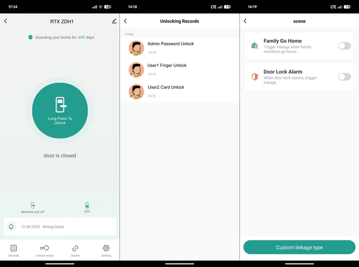 ✅Log zdarzeń otwarcia, użycia kodu, karty RFID, czytnika linii papilarnych