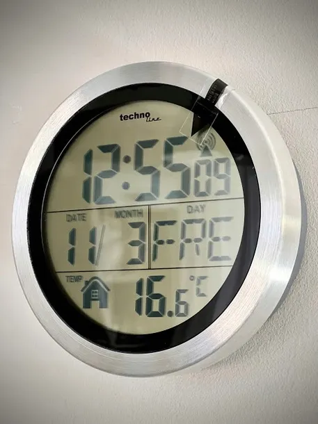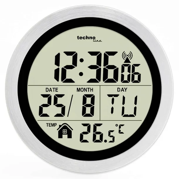 Zegar WT3005 COSMO HOME odbiera sygnał DCF-77, co zapewnia dokładność czasu. Sygnał DCF-77 to swoisty wzorzec czasu nadawany w paśmie fal długich na częstotliwości 77,5 kHz z miejscowości Mainflingen, około 25 km na południowy wschód od Frankfurtu nad Menem w Niemczech. Stabilizowany przez cezowy zegar atomowy w laboratoriach Physikalisch-Technische Bundesanstalt (PTB) w Brunszwiku, sygnał ten nadaje z mocą 50 kW, obejmując swoim zasięgiem Europę Zachodnią i Środkową w promieniu do 2000 km. Na wyświetlaczu zegara znajdziesz także informacje o temperaturze wewnętrznej, dacie oraz dniu tygodnia, co zwiększa jego funkcjonalność.